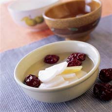 紅糖姜湯:紅糖具有養(yǎng)血、活血的作用,加到姜湯里,可改善體表循環(huán),治療傷風(fēng)感冒。需要注意的是,生姜紅糖水只適用于風(fēng)寒感冒或淋雨后胃寒,不能用于暑熱感冒或風(fēng)熱感冒。女性痛經(jīng)的時候,一碗紅糖姜湯也能有很好的緩解痛經(jīng)的作用。