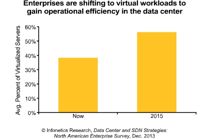 ICCSZ訊 日前,市場調(diào)研公司Infonetics發(fā)布其2013年數(shù)據(jù)中心和SDN策略:北美企業(yè)調(diào)查報告。該報告揭示了當(dāng)前數(shù)據(jù)中心的現(xiàn)狀,以及北美企業(yè)未來兩年在數(shù)據(jù)中心的計劃。