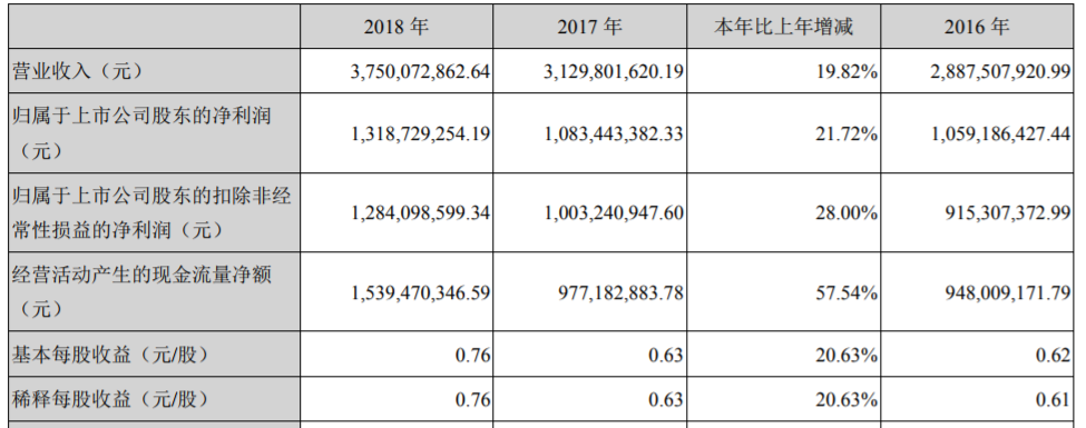 ICCSZ訊 (編輯:Nicole)潮州三環(huán)(集團(tuán))股份有限公司(以下簡稱:三環(huán)集團(tuán)或公司)公布2018年度業(yè)績報告:報告期內(nèi),公司實現(xiàn)營業(yè)收入37.50億元,比上年同期增長19.82%;營業(yè)利潤15.45億元,比上年同期增長22.84%;歸屬于母公司所有者的凈利潤13.19億元,比上年同期增長21.72%,主要原因是公司抓住市場成長時機(jī),把握行業(yè)發(fā)展紅利,調(diào)整市場經(jīng)營策略,提高產(chǎn)品競爭優(yōu)勢,電子元件及材料等產(chǎn)品銷售額明顯增長。