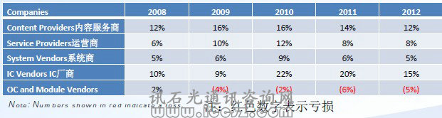 整個產(chǎn)業(yè)鏈從使用者運營商/網(wǎng)絡(luò)運營商、數(shù)據(jù)中心運營商到系統(tǒng)商電信運營商(匯聚、傳輸、交換)、數(shù)據(jù)通信運營商(路由器、交換機、服務(wù)器)系統(tǒng)商),再到器件和模塊商光器件、通信半導(dǎo)體廠商、收發(fā)器。