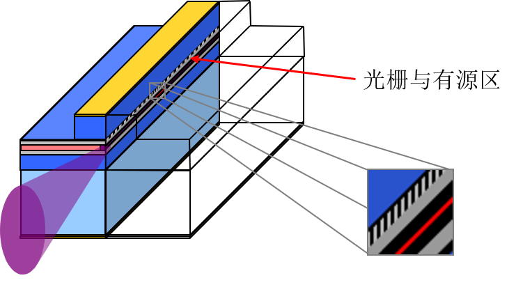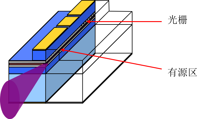 雖同采用光柵選擇并鎖定頻率,DFB結(jié)構(gòu)光柵分布于整個(gè)有源區(qū)內(nèi),頻率鎖定機(jī)制強(qiáng)大,工序精密復(fù)雜。DBR的光柵分布于有源區(qū)兩側(cè),布拉格光柵對(duì)激光腔內(nèi)頻率進(jìn)行挑選。