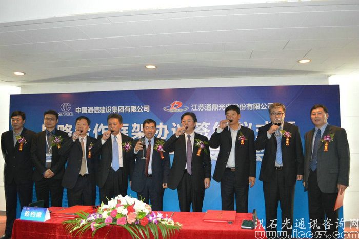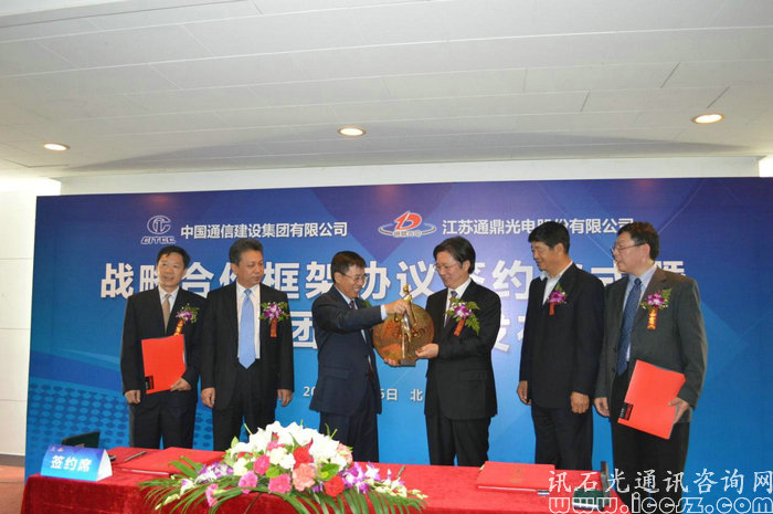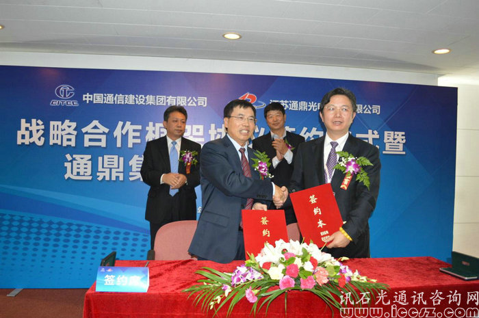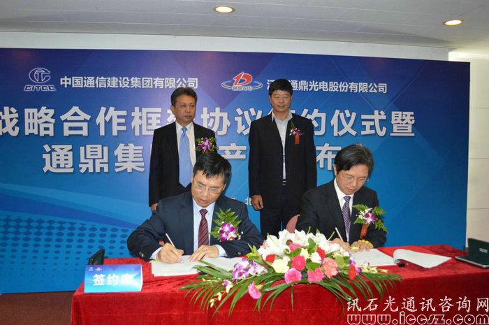 在展覽會(huì)期間,同時(shí)舉行各種論壇,以及各企業(yè)達(dá)成的簽約合作儀式。26日下午,江蘇通鼎光電股份有限公司(以下簡(jiǎn)稱“通鼎”)與中國通信建設(shè)集團(tuán)有限公司(以下簡(jiǎn)稱“中通建”)就達(dá)成戰(zhàn)略合作框架舉行簽字儀式,同時(shí)舉行新品發(fā)布會(huì)。會(huì)議主要由七大流程組成,首先是通鼎集團(tuán)新產(chǎn)品介紹,然后是中通建總經(jīng)理致辭講話,緊接著通鼎董事長(zhǎng)為簽約合作會(huì)議致辭講話,然后來到會(huì)議最重要部分,在大會(huì)來賓與媒體朋友的見證下通鼎與中通建簽署戰(zhàn)略合作框架協(xié)議!協(xié)議簽署完成之后,簽約雙方簽署產(chǎn)品贈(zèng)送協(xié)議,最后互換禮品以及合影慶祝!