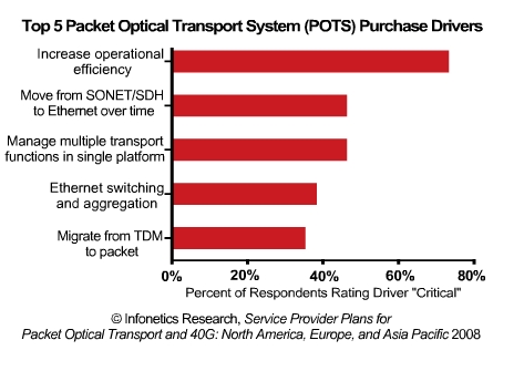 “我們采訪過(guò)的大多數(shù)服務(wù)提供商都希望在100G以太網(wǎng)真正到來(lái)之前投資40G以太網(wǎng),” Infonetics合伙人兼首席分析師Michael Howard提到,“也有一些供應(yīng)商希望能跳過(guò)40G以太網(wǎng)這個(gè)階段,但我們認(rèn)為這不是一個(gè)可行的選擇,因?yàn)椴粩嘣鲩L(zhǎng)的通信量正超出現(xiàn)有承受能力,而在2012年或2013年之前,100G以太網(wǎng)都不會(huì)到達(dá)合理的價(jià)位。”