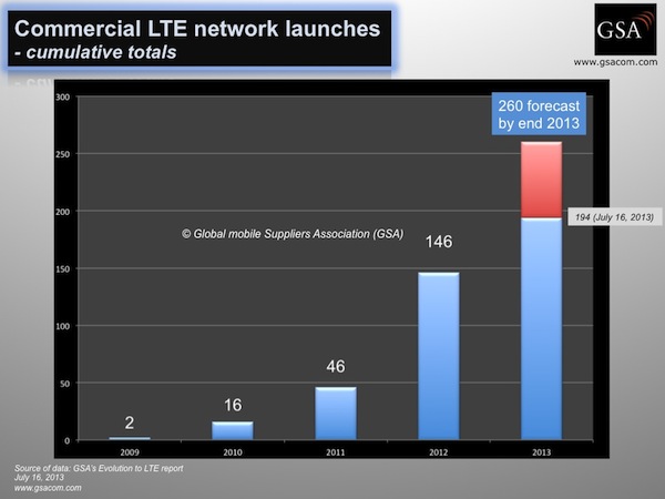 【訊石光通訊咨詢網(wǎng)】2013年7月17日,最新的GSA(全球移動供應(yīng)商協(xié)會)LTE報(bào)告指出,有194家運(yùn)營商在全球75個國家或地區(qū)已正式推出商用LTE服務(wù)。