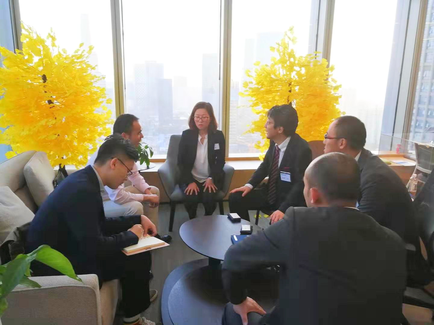自左向右:大金資深主任魏景波、廣州分公司總經(jīng)理戴佳鳴、上海分公司副總經(jīng)理森賀一介與訊石編輯合影