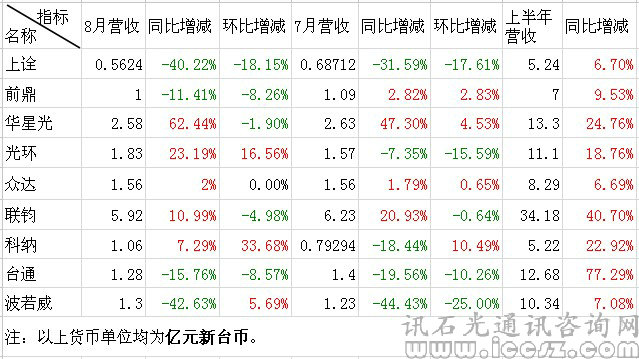 臺(tái)灣光通信8月?tīng)I(yíng)收情況
