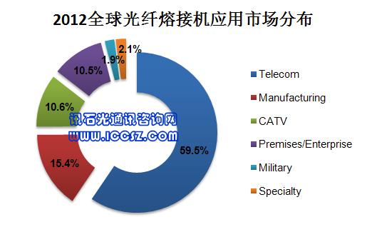 同時(shí),從應(yīng)用方面來(lái)看,2012年,應(yīng)用于電信領(lǐng)域的光纖熔接機(jī)占59.5%;從2012年到2017年間,用于生產(chǎn)制造光器件/設(shè)備的光纖熔接機(jī)預(yù)計(jì)將以13.8%的年均增長(zhǎng)率增長(zhǎng);用于部署光纖私人企業(yè)網(wǎng)絡(luò)的光纖熔接機(jī)消費(fèi)值則預(yù)計(jì)將從2012年的4617萬(wàn)美元增長(zhǎng)至2017年的8000萬(wàn)美元。