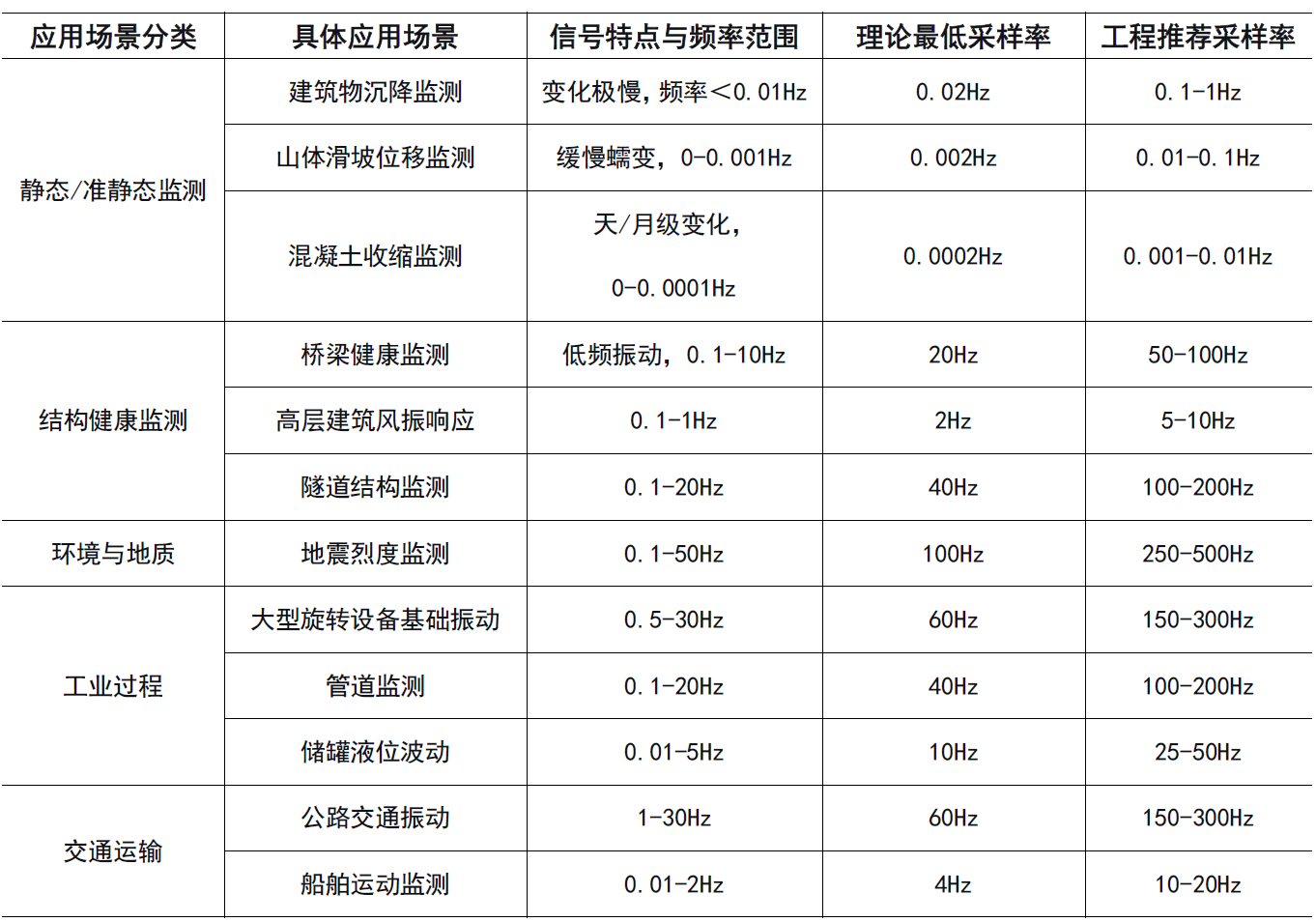表1.不同應(yīng)用場景下的傳感采樣率要求匯總表
