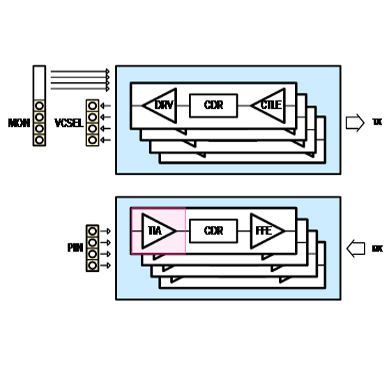 產(chǎn)品名稱:100G 多模收發(fā)電芯片