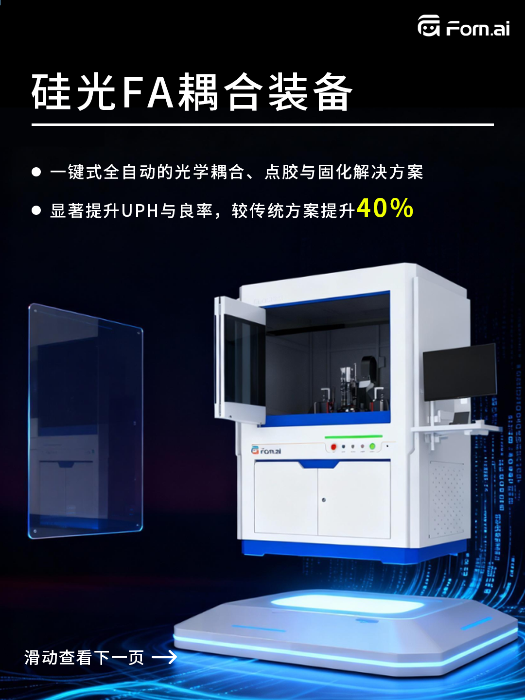 ICC訊 形識(shí)智能自主研發(fā)的硅光 FA 耦合裝備,以 “耦合-點(diǎn)膠-固化” 一體化全自動(dòng)方案,適配400G至3.2T全系列硅光模塊。一鍵操作即可完成高精度流程,不僅兼具超高效率與超穩(wěn)性能,更實(shí)現(xiàn)UPH(單位小時(shí)產(chǎn)能)與良率較傳統(tǒng)方案飆升 40%,真正攻克硅光模塊量產(chǎn)效率難題,為行業(yè)按下量產(chǎn) “加速鍵”!
