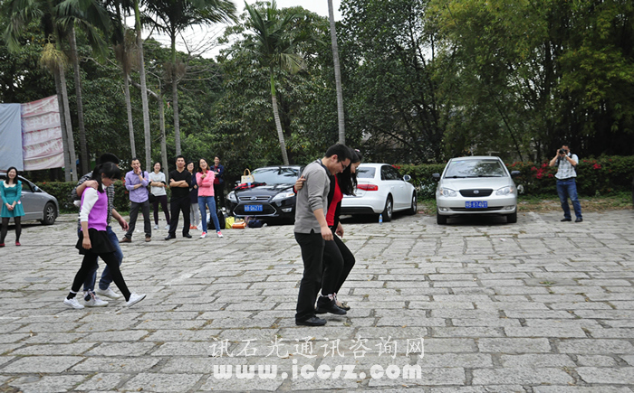 第三個(gè)游戲則是常見(jiàn)的“兩人三足”——兩個(gè)人綁著腳進(jìn)行配合走路比賽,考驗(yàn)的是默契程度。在現(xiàn)場(chǎng)的歡聲笑語(yǔ)下,出現(xiàn)兩兩“默契達(dá)人”——綁著腳竟然還能飛速奔跑!讓現(xiàn)場(chǎng)觀眾一次次歡呼鼓掌。