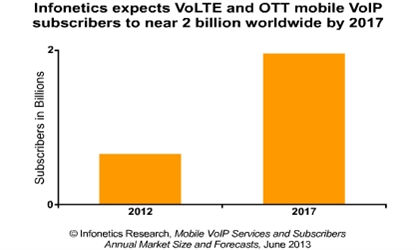 OTT移動VoIP和VoLTE服務(wù),到2017年有望達到160億美元。