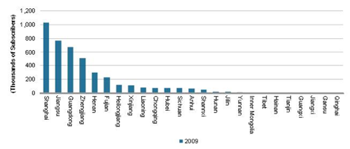 IPTV服務(wù)目前已擴(kuò)展到中國的20多個(gè)省市,但I(xiàn)PTV用戶只集中在少數(shù)幾個(gè)地區(qū)。在中國的22個(gè)省中,IPTV用戶超過10萬的不到八個(gè)。而且,全部IPTV用戶中有整整56%只集中在三個(gè)地區(qū):中國最大城市上海,以及人口密集的東部省份江蘇和南部省份廣東。