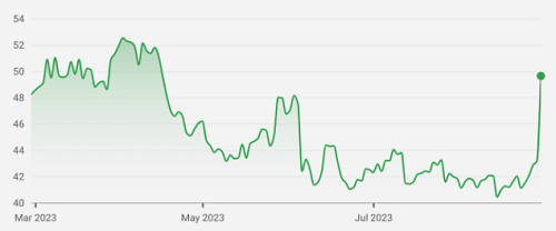 Ciena過去三個月的股價走勢實際上是U型的。今年6月,當這家光學設(shè)備制造商公布第二財季數(shù)據(jù)時,由于對積壓訂單的擔憂和向下修正指引,該公司股價下跌了十分之一?,F(xiàn)在,在Smith吹噓市場份額的增長和客戶對Ciena系列產(chǎn)品的強勁需求之后,該公司在紐交所開盤時上漲了13%。在印度,Ciena正受益于反華為情緒和5G的大規(guī)模推出。