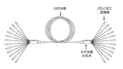 使用 24 芯主干光纜的 2 芯系統(tǒng)示例