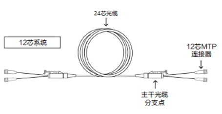 使用 24 芯主干光纜的12 芯系統(tǒng)示例