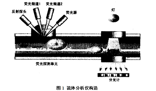 發(fā)光頻率為f的激光經(jīng)透鏡,光纖被送到表皮組織。對于不動的組織,例如血管壁,所反射的光不產(chǎn)生頻移;而對于皮層毛細血管里流速為 的紅細胞,反射光要產(chǎn)生頻移,其頻率變化為△f;發(fā)生頻移的反射光強度與紅細胞的濃度成比例,頻率的變化值可與紅細胞的運動速度成正比。發(fā)射光經(jīng)光纖收集后,先在光檢測器上進行混頻,然后進人信號處理儀,從而得到紅細胞的運動速度和濃度。