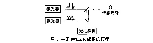 BOTDR光纖傳感系統(tǒng)測量的是光纖的自發(fā)布里淵散射信號,其信號強度非常微弱,但可以采用相干檢測技術(shù)提高系統(tǒng)信噪比。這種方案可單光源、單端工作,系統(tǒng)簡單,實現(xiàn)方便,而且可同時監(jiān)測光纖斷點、損耗、溫度和應(yīng)變。