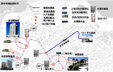 在FTTB﹙光纖到樓宇﹚和FTTO﹙光纖到辦公室﹚場景中,不包括入戶后ODN部分的網(wǎng)絡(luò)覆蓋,無需考慮入戶光纜的布放問題。