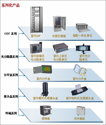 華為公司提供全系列的ODN設(shè)備,覆蓋從OLT到ONT之間的每個節(jié)點,包括ODF、光纜交接箱、接頭盒、光分路單元、分纖盒、光纖插座、弱電箱、網(wǎng)絡(luò)箱等。