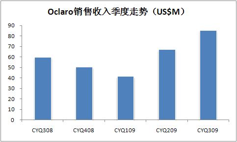 截至2009年9月26日的三個(gè)月,Oclaro凈收入同比增加43.2%至2570萬(wàn)美元,增長(zhǎng)主要來(lái)自今年4月與Avanex公司合并所產(chǎn)生的收入,與電信業(yè)務(wù)密切相關(guān)。三季度電信和先進(jìn)光學(xué)解決方案部門收入分別比去年同期增長(zhǎng)2,120萬(wàn)元和450萬(wàn)美元。其中先進(jìn)光學(xué)解決方案部門收入同比增加,主要來(lái)自New Focus業(yè)務(wù)的710萬(wàn)美元收入。