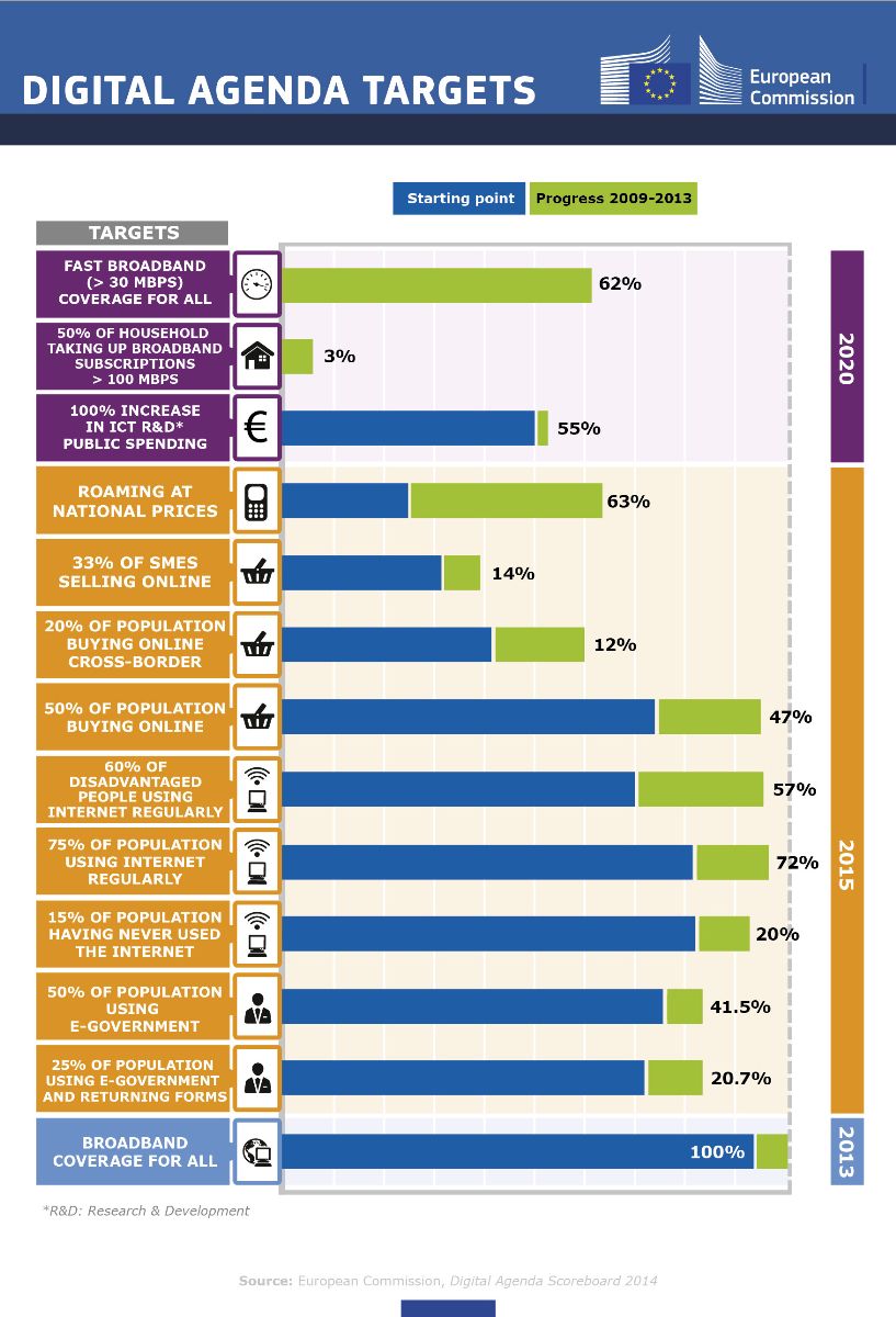 ICCSZ訊(編譯:Nina)歐盟委員會表示,它已經(jīng)實現(xiàn)“2013年實現(xiàn)基本寬帶全覆蓋”的目標(biāo),并且正積極邁向“歐洲數(shù)字議程(Digital Agenda for Europe,DAE)”上的其它目標(biāo)。不過,歐盟農(nóng)村地區(qū)的高速寬帶部署仍然落后。