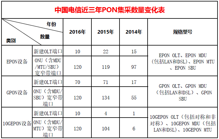 據(jù)悉,中國聯(lián)通2016年P(guān)ON設(shè)備集采也即將啟動。中國聯(lián)通在打造全光網(wǎng)省市方面,投入力度相當(dāng)之大,隨著一次光改的結(jié)束,又將啟動全國的二次光改,GPON設(shè)備的需求量又將出新井噴。