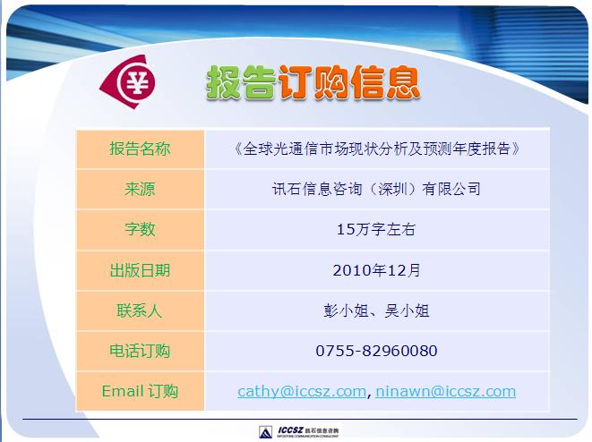 2010年全年光通訊市場(chǎng)總結(jié)年度報(bào)告即將推出,火熱預(yù)定中