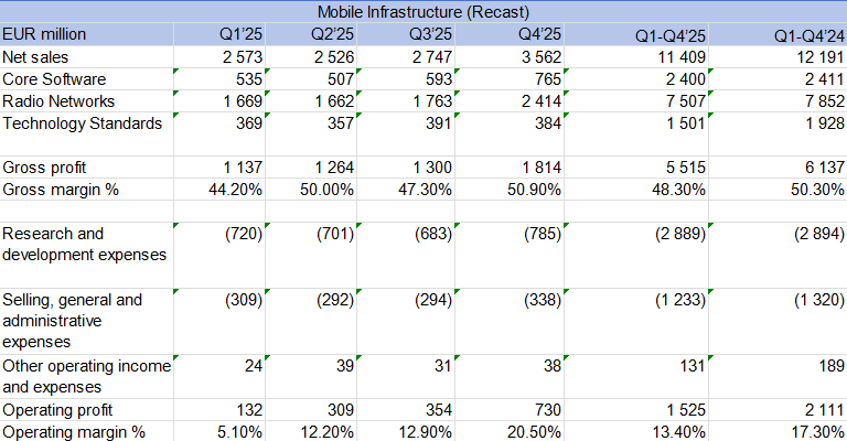 諾基亞自2026年第一季度財(cái)務(wù)業(yè)績起將按照新的組織結(jié)構(gòu)報(bào)告分部財(cái)務(wù)信息。除三大運(yùn)營分部的完整財(cái)務(wù)信息外,諾基亞還將披露網(wǎng)絡(luò)基礎(chǔ)設(shè)施和移動基礎(chǔ)設(shè)施分部內(nèi)各業(yè)務(wù)單元的凈銷售額信息。此外,公司將繼續(xù)提供"集團(tuán)共同及其他"(Group Common and Other)的分部層面數(shù)據(jù)。