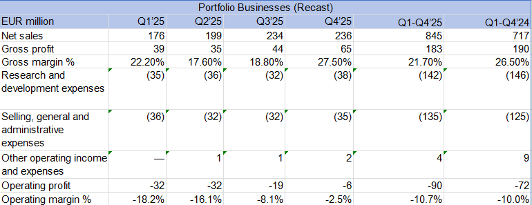 此外,作為其戰(zhàn)略工作的一部分,諾基亞識別出若干被視為不符合公司未來戰(zhàn)略核心的單元。這些單元被移入一個(gè)名為"業(yè)務(wù)組合"(Portfolio Businesses)的獨(dú)立運(yùn)營分部,公司將在評估期間為其尋求最佳的價(jià)值創(chuàng)造機(jī)會。被移入的單元包括:(一)固定無線接入CPE(此前隸屬于網(wǎng)絡(luò)基礎(chǔ)設(shè)施項(xiàng)下的固定網(wǎng)絡(luò))、(二)站點(diǎn)實(shí)施和外部設(shè)備(此前隸屬于網(wǎng)絡(luò)基礎(chǔ)設(shè)施項(xiàng)下的固定網(wǎng)絡(luò))、(三)企業(yè)園區(qū)邊緣(此前隸屬于云和網(wǎng)絡(luò)服務(wù)),以及(四)微波無線電(此前隸屬于移動網(wǎng)絡(luò))。