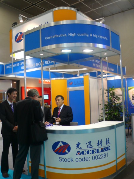 光迅科技展臺前客人絡繹不絕,據悉大部分客戶都已經提前預約好。展會上公司攜五大系列產品出展,充分體現了光迅科技的產品線長、覆蓋面廣的特點。除了傳統(tǒng)的光纖放大器系列、波分復用器系列、光電學器件系列和光通信儀表系外,針對光纖到戶新技術背景下的FTTH光器件系列也是本次光迅科技的重點展出產品;此外,TOF、WSS、TDC、無熱AWG等具有領先工藝的新產品也將同期展出,以展示光迅科技近年來在新品研發(fā)上的進展。