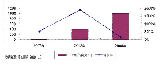 圖3 2007-2009年中國(guó)FTTx用戶數(shù)量