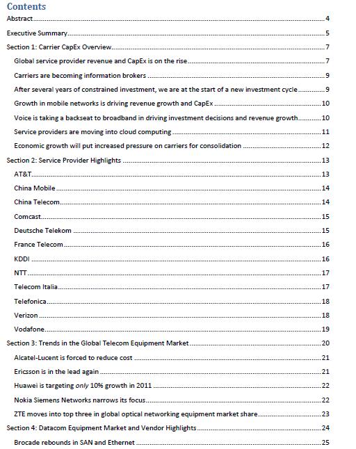 因?yàn)閴南⒖偙葲](méi)有消息更好,關(guān)注消極事件背后隱藏的積極因素,我們也可以幫助企業(yè)在一段不確定性時(shí)間內(nèi)繼續(xù)往前運(yùn)轉(zhuǎn)。當(dāng)然,2011年對(duì)于通信行業(yè)的好消息是大家喜聞樂(lè)見(jiàn)的。首先,排名前12的服務(wù)供應(yīng)商在今年的總收入上升了7.5%,而前兩年處于停滯狀態(tài)。移動(dòng)寬帶服務(wù)和云計(jì)算是推動(dòng)這一增長(zhǎng)的主要因素。雖然運(yùn)營(yíng)商正試圖改善他們的頂端線路,但他們對(duì)市場(chǎng)的不確定性資本支出(CAPEX)仍保持謹(jǐn)慎。