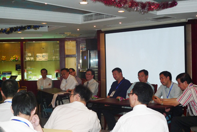 首先登場的是飛陽科技總裁李朝陽先生,他以《PLC芯片產(chǎn)業(yè)(中國)概述》為題,從PLC技術(shù)的概念、PLC產(chǎn)品、PLC市場前景到FAB在國內(nèi)生存、發(fā)展的必要條件,一一地為大家娓娓道來。在提到PLC市場前景的時(shí)候,李總也面帶笑容地恭喜大家:在年底后全世界的經(jīng)濟(jì)得以恢復(fù),PLC市場也會(huì)呈現(xiàn)一片大好的場面。接下來,是博創(chuàng)的朱偉博士為大家?guī)怼短剿鱌LC集成器件的發(fā)展道路》。朱博士以Bell Labs為引子,談到PLC的現(xiàn)狀與未來,講話中途,不時(shí)有各位公司老總提出問題,并對博創(chuàng)發(fā)展的如此之快表示極大的贊賞。