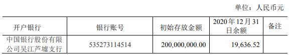 截至 2020 年 12 月 31 日,本公司募集資金在銀行賬戶的存儲(chǔ)情況如下: