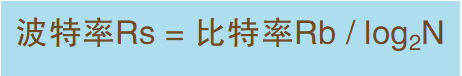 從圖很容易推出,已知波特率 Rs、碼元狀態(tài)總數(shù)量 N 后,對應比特率 Rb 關(guān)系如下: