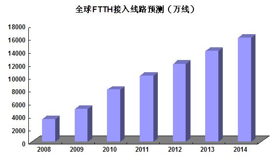 來自O(shè)vum的研究分析表示,到2014年,光纖到戶(Fiber to the home,F(xiàn)TTH)將取代DSL,成為領(lǐng)先的固定連接因特網(wǎng)接入技術(shù)。