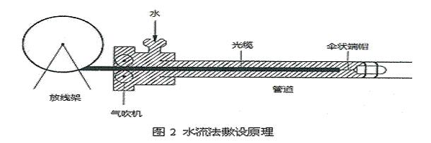水的密度較空氣大,光纜在水中所受浮力作用效果比氣吹法敷設(shè)時更為明顯,而光纜所受管道內(nèi)壁摩擦阻力也相應(yīng)更小。