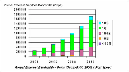 圖1 2004-2008全球以太網(wǎng)帶寬需求
