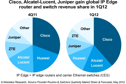 2012 Q1,思科,Juniper和華為占全球核心路由器收入的96%。