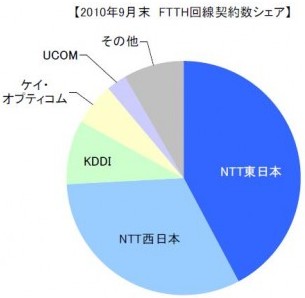 從運(yùn)營商來看,NTT東西的FTTH用戶占據(jù)約74.1%的市場份額,共有FTTH接入用戶1424萬,2010年上半年凈增98.9萬FTTH用戶,2009年上半年凈增114.4萬,用戶增長速度有所放緩。
