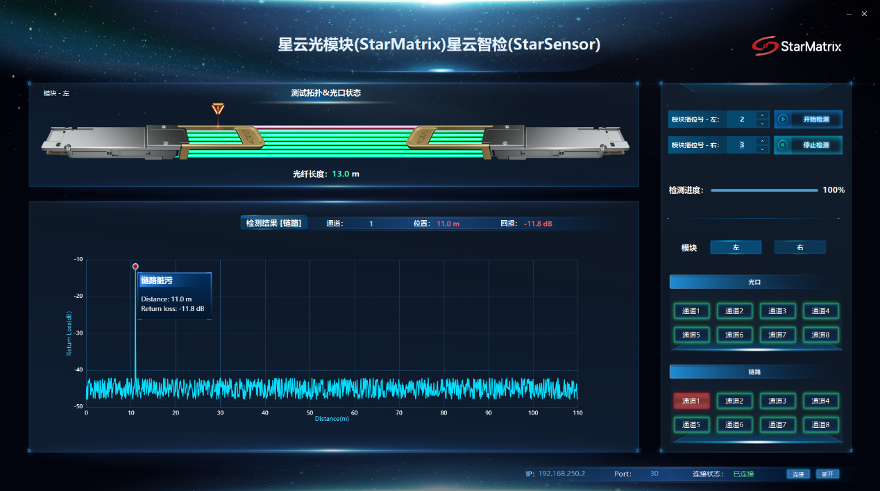 隨著智算網(wǎng)絡(luò)規(guī)模的持續(xù)擴(kuò)容,光鏈路數(shù)量呈爆發(fā)式增長(zhǎng),傳統(tǒng)人工排障模式已難以匹配高效運(yùn)維需求。海思光電立足二十余年光電技術(shù)積淀,通過(guò)系統(tǒng)性技術(shù)重構(gòu)打造出適配智算網(wǎng)絡(luò)的StarMatrix 星云光互聯(lián)解決方案,其獨(dú)家搭載的星云智檢 StarSensor 功能,以分鐘級(jí)檢測(cè)、厘米級(jí)定位的核心優(yōu)勢(shì),有效消除 AI 訓(xùn)練開局隱患,為智算中心的長(zhǎng)穩(wěn)運(yùn)行提供可靠保障。