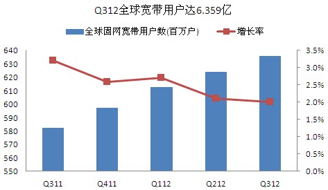 【訊石光通訊咨詢網(wǎng)】截止到2012年9月底,全球?qū)拵в脩粲?.359億,環(huán)比增長2%,同比增長12.3%。