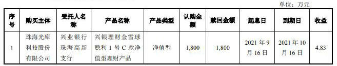 ICC訊 10月19日,珠海光庫科技股份有限公司(簡稱“光庫科技”或“公司”,300620)發(fā)布關(guān)于使用部分自有資金進行現(xiàn)金管理的進展公告,稱使用不超過2億元人民幣自有資金購買銀行或其他金融機構(gòu)發(fā)行的安全性高、流動性好的低風(fēng)險投資產(chǎn)品,使用期限自2020年年度股東大會審議通過之日起十二個月之內(nèi)有效。