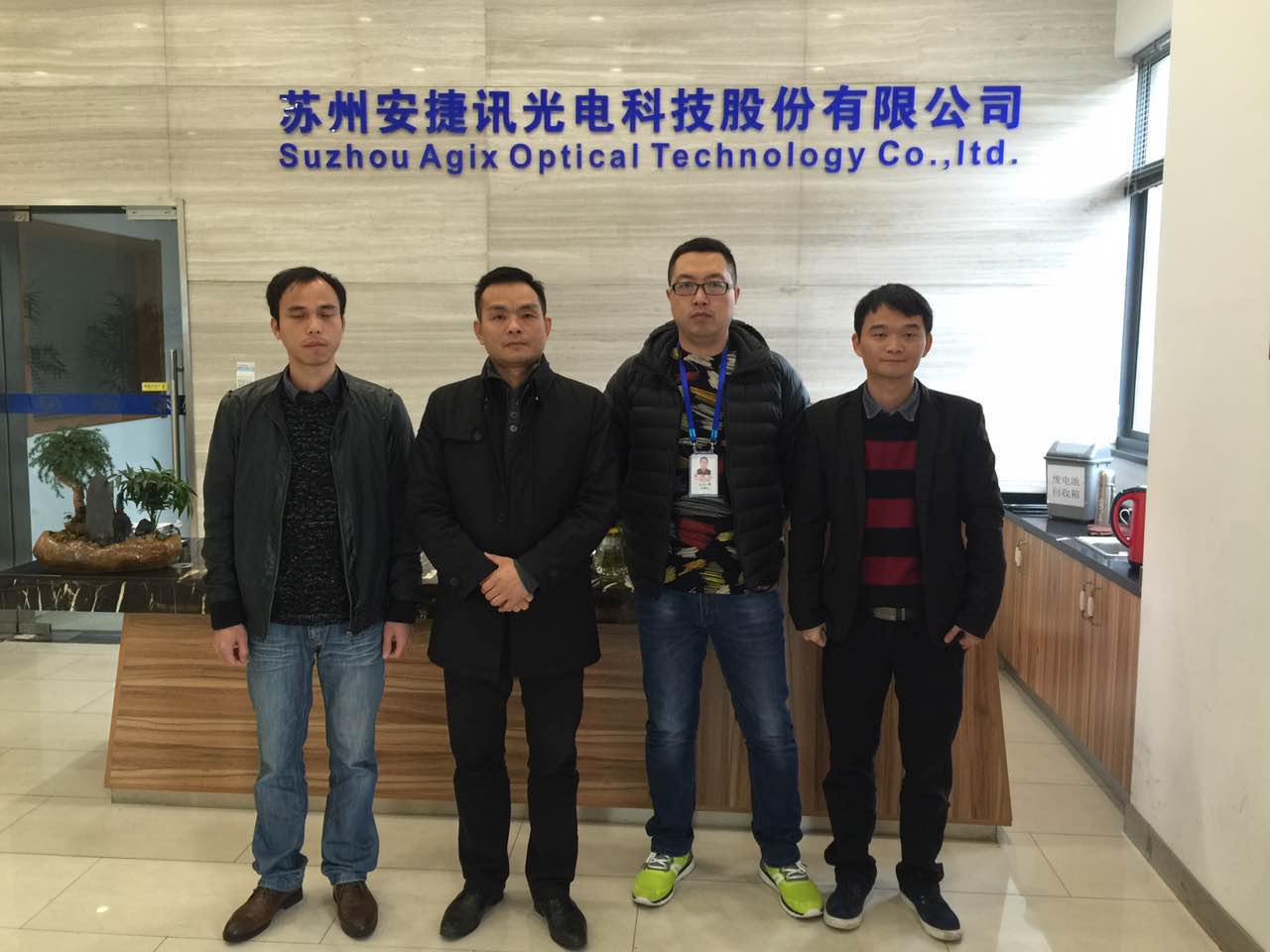 ICCSZ訊 2017年2月22日,「2017訊石江浙行」進入第三天,訊石團隊來到了本次拜訪之行的第十站——蘇州安捷訊光電科技股份有限公司(以下簡稱“安捷訊”或“公司”)。這是一家以“誠信 創(chuàng)新 服務”為企業(yè)精神的高新技術企業(yè),2009年由一批通信行業(yè)的資深專業(yè)人員創(chuàng)辦,歷經(jīng)近8年的耕耘發(fā)展,逐漸在蘇州這處江南水鄉(xiāng)綻放出光通信的熠熠光芒,并成功于2016年7月在新三板掛牌上市,證券代碼838112。