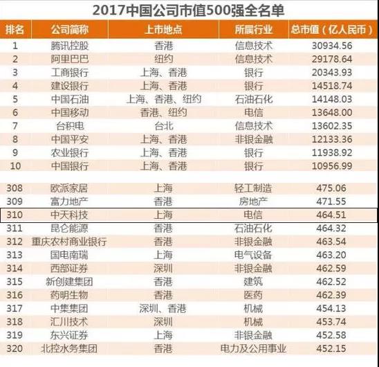 ICCSZ訊 日前,國(guó)內(nèi)權(quán)威財(cái)經(jīng)媒體21數(shù)據(jù)新聞實(shí)驗(yàn)室發(fā)布了2017中國(guó)上市公司市值500強(qiáng)榜單,中天科技憑借穩(wěn)健的經(jīng)營(yíng)發(fā)展和市值表現(xiàn),在全球上市的6000多家中國(guó)公司中脫穎而出,以市值464.51億元排名榜單第310位。