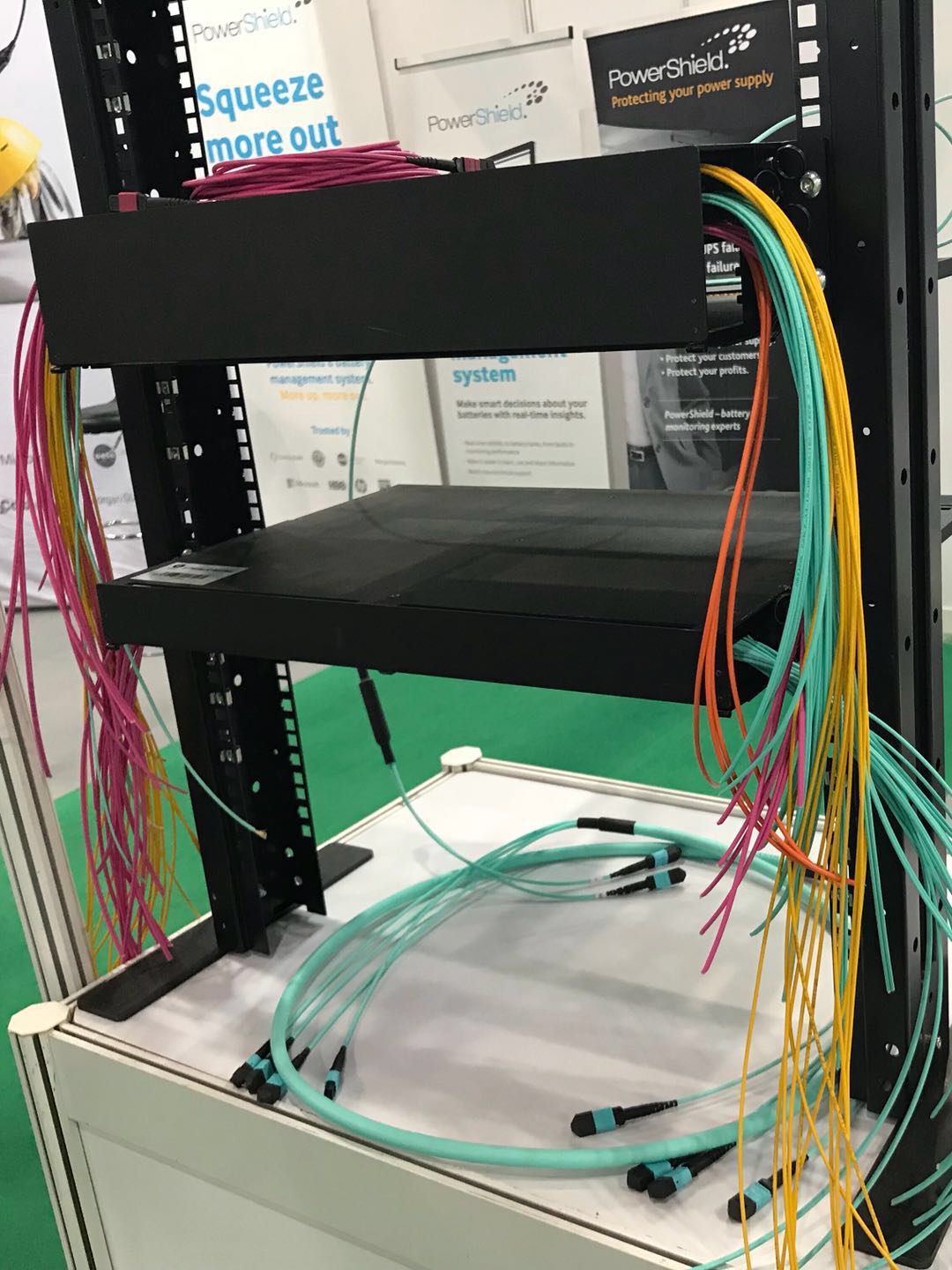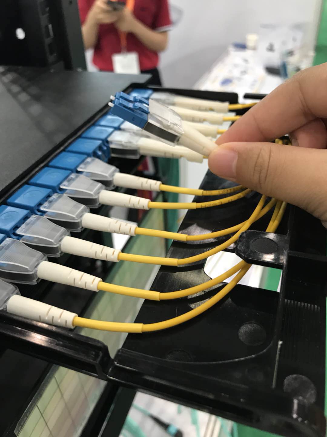清遠億源通(HYC)此次重點參展數據中心高密度光纖箱,該產品支持1u,2u,4u。1u是三層,144芯,2u是6層,288芯。模塊化,方便使用uniboot,帶拉桿連接器;帶內置防塵蓋的適配器;帶拉桿的MPO等,以上產品都帶公司自主研發(fā)設計專利。還展出了用于高速光模塊的各種配件等。