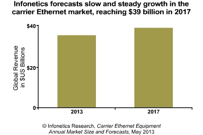 Infonetics預(yù)計(jì)到2017年,全球運(yùn)營商以太網(wǎng)設(shè)備端口將增至9500萬個,其中10G以太網(wǎng)增長快于1G以太網(wǎng)。