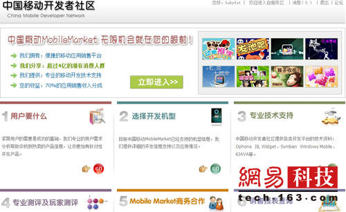據(jù)了解,中國(guó)移動(dòng)Mobile Market開(kāi)發(fā)者社區(qū)包括“用戶要什么”、“選擇開(kāi)放機(jī)型”、“專業(yè)技術(shù)支持”、“專業(yè)測(cè)評(píng)及玩家測(cè)評(píng)”、“Mobile Market商務(wù)合作”、“銷售報(bào)表查詢”等六個(gè)模塊。