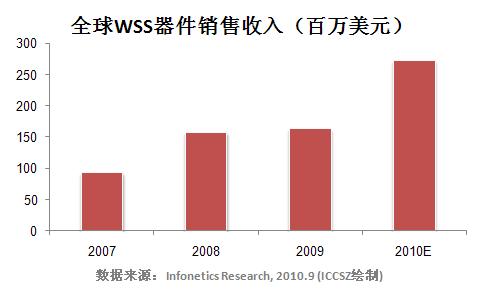 *預(yù)計(jì)到2012年,來自50GHz通道的WSS器件產(chǎn)品收入將占整個(gè)WSS市場收入一半以上。